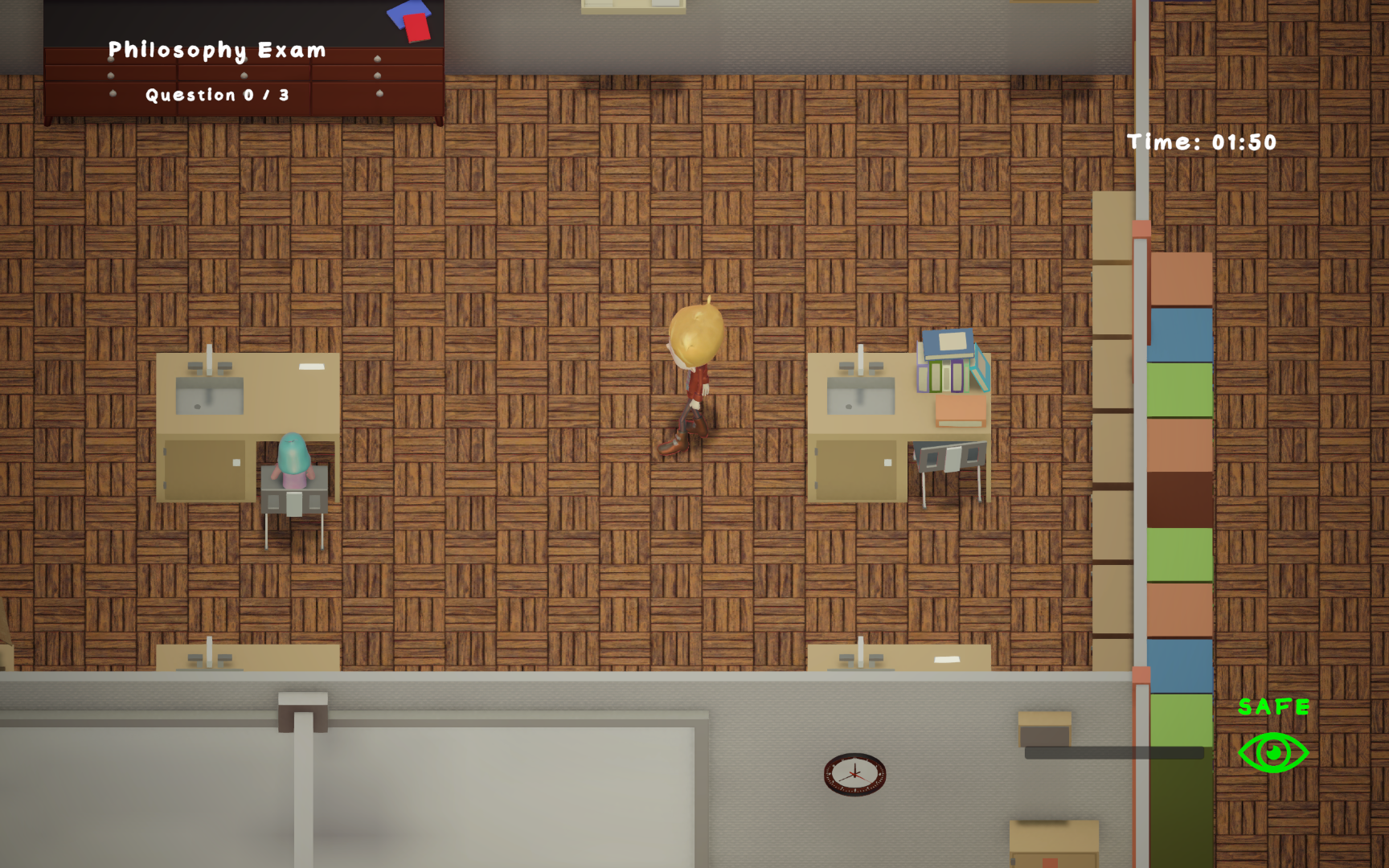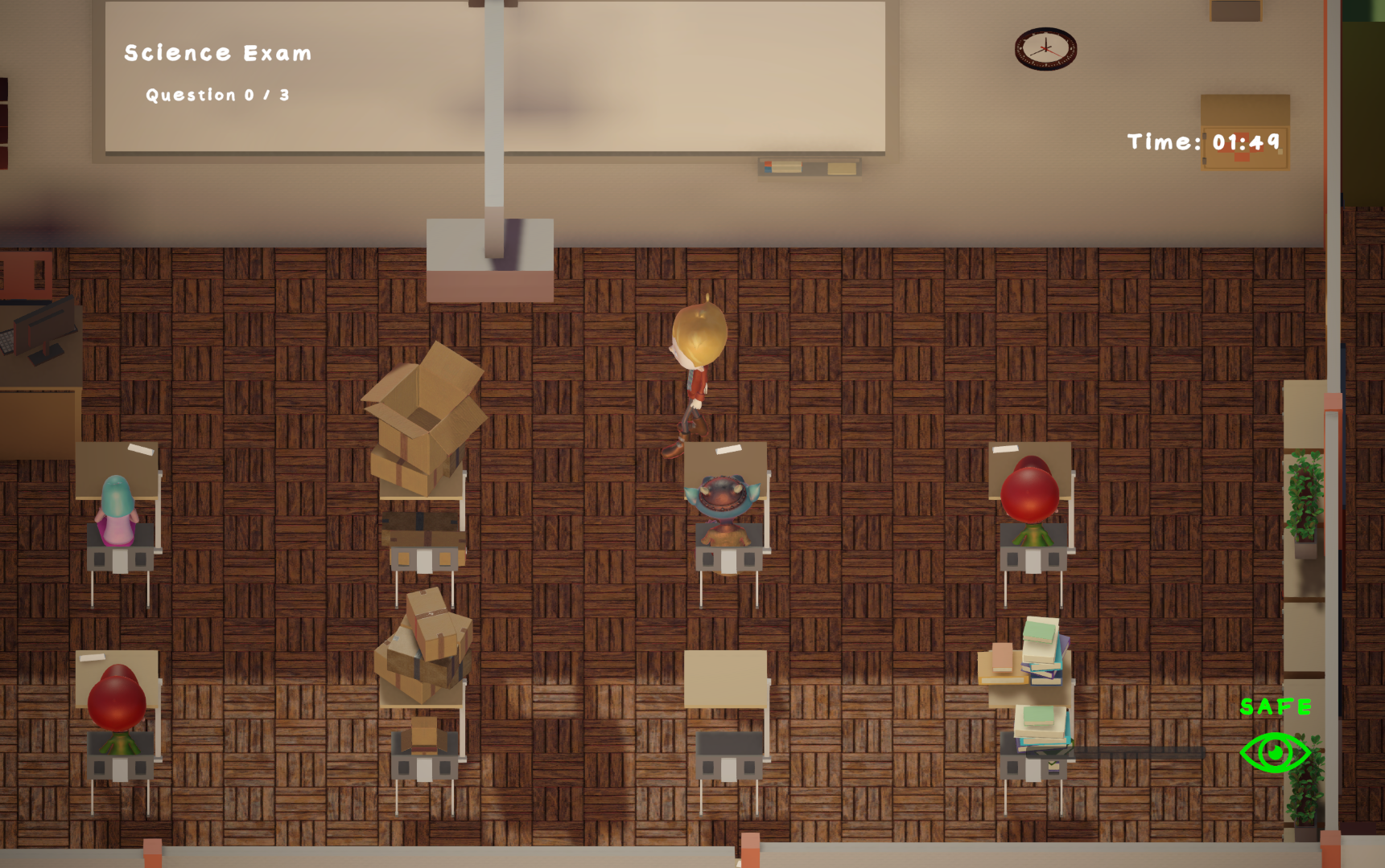 Tu es un étudiant qui n'a pas révisé. Ta seule option ? Copier sur tes camarades sans te faire attraper par le professeur.